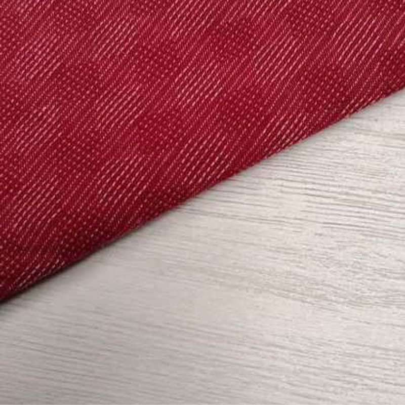 Diseño: Textura veteada en diagonal que combina rojo intenso con sutiles notas blancas, creando un efecto visual similar al denim fino.